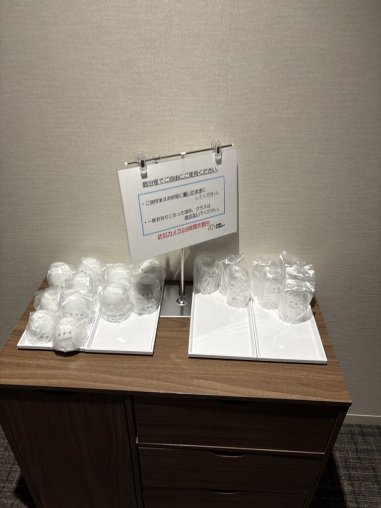 コップは廊下に置かれているので人数分、自分で持っていきます。