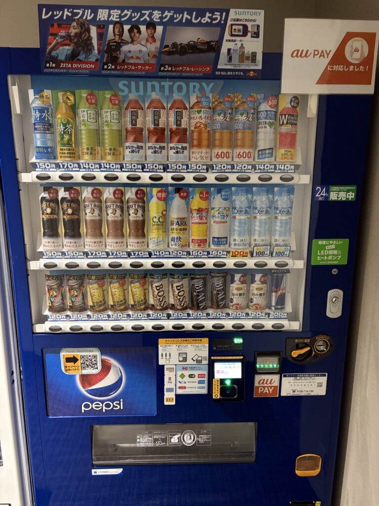 必要な方は、自動販売機か1階のコンビニエンスストアで購入してから入室しましょう。