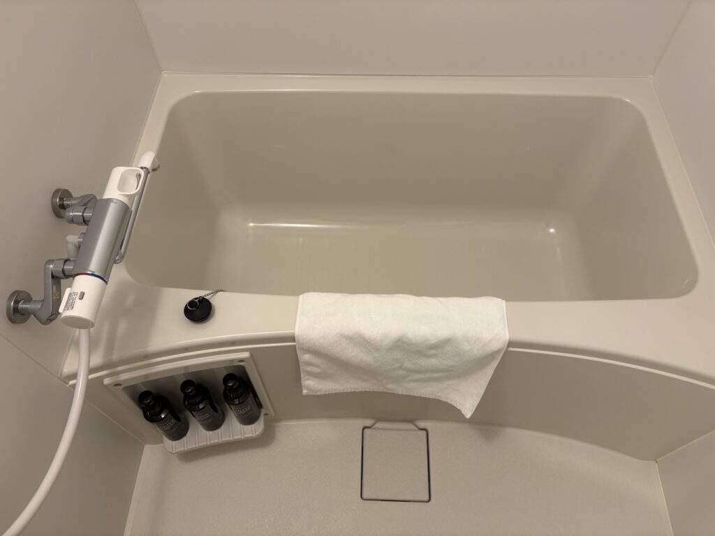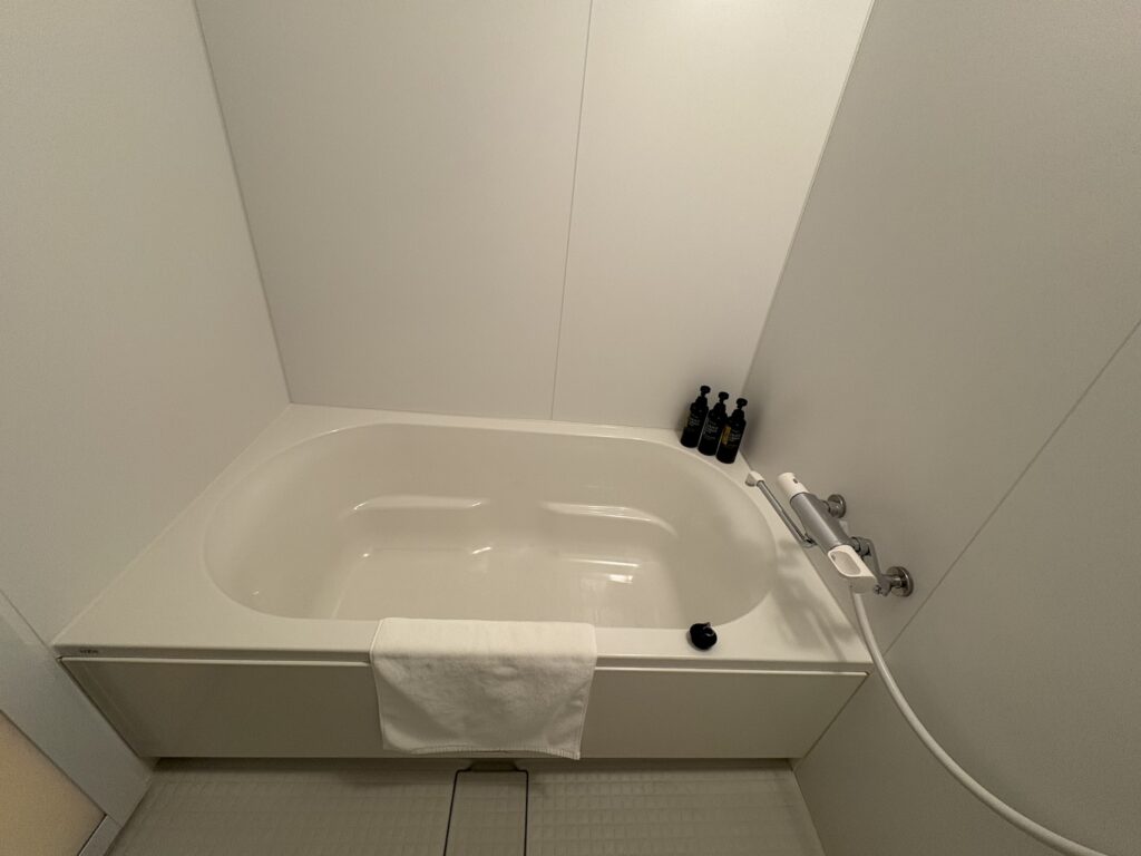 小さめの浴槽ですが、お湯を溜めて入りました。