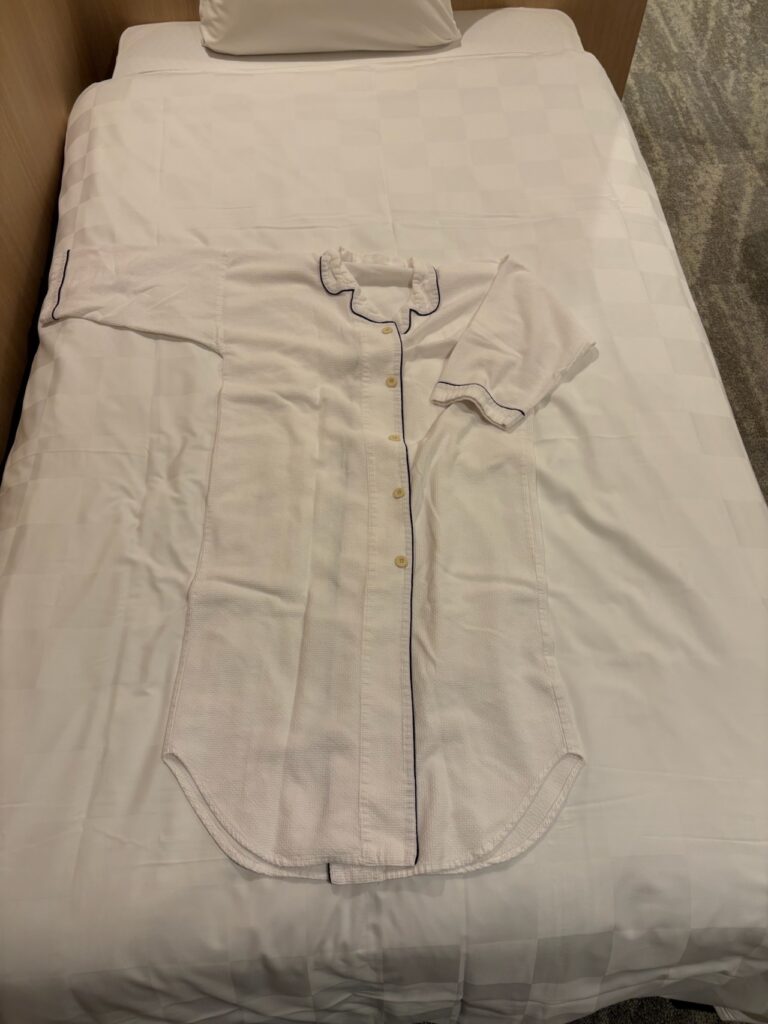部屋に用意されているパジャマはワンピースタイプです。