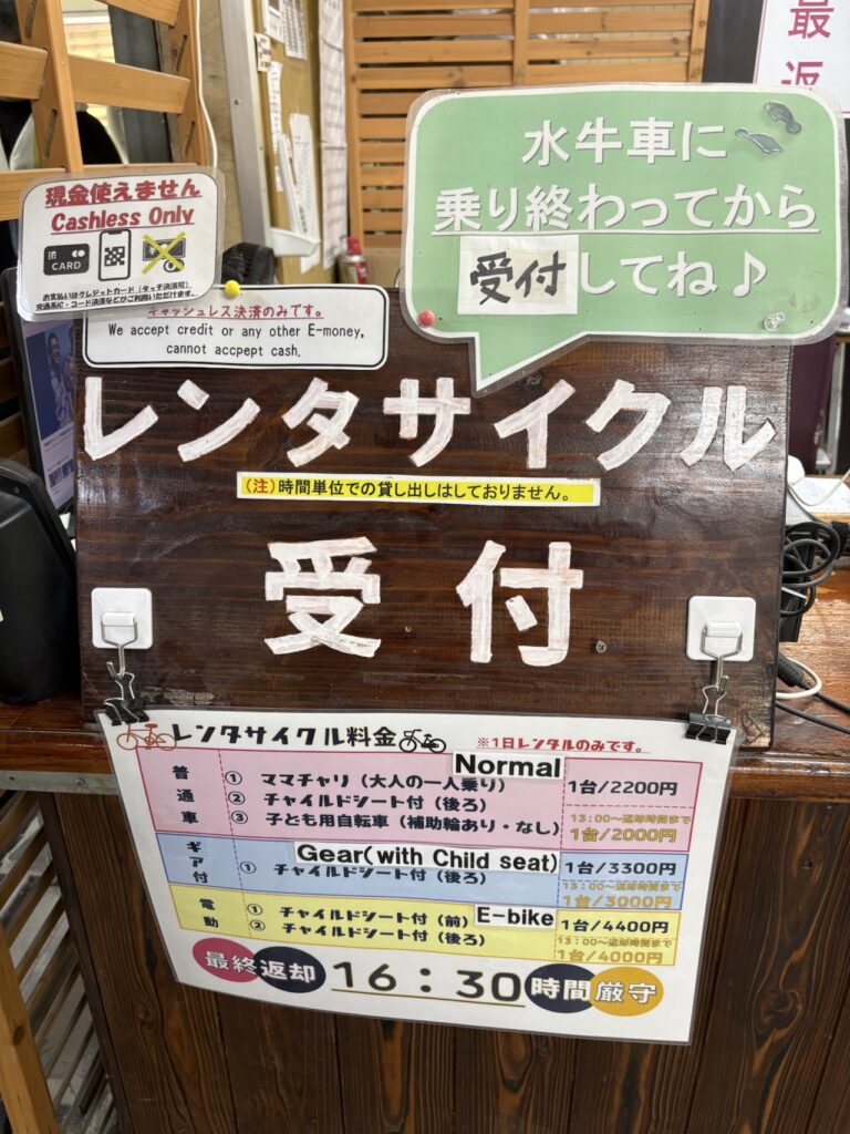 水牛車に乗り終わった方は、竹富観光センターで自転車を借りることができます。